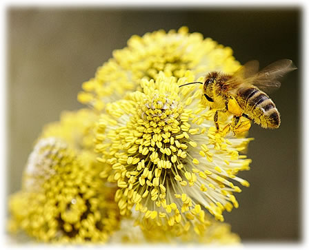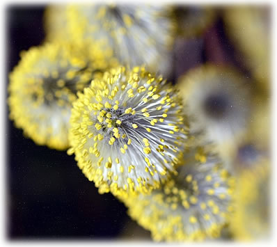 "Ei-ei, Herr Wichelbusch, wat hebbt See dor för feine, dicke Katten?" Un se setten sik, ohn' to frågen, glieks bi de Kattenblötenkinner hen, erbeden sik 'n lütte beten Wichelhonnig vun jüm, wieldat se Döst harrn, un stråkelt dorbi dat fiene, gollene Fell vun de lüttjen Katten. "Nanu, wat is denn dat?", reep de Wichelbusch heel verbååst, "dat Fell farvt ja af, an Seehrs Kleder hangt ja luter Gold!" "M-m", möken de Immenfruuns, "dat is ja fein! Dat bringt wi uns' Kinner mit, dor warrt dee sik över freuen!" Un se steken den gollenen Blötenstoff, dee wohrhaftig vun de Kattenhoor keem, gau in seehrs lüttjen Körv rin. De Wichelbusch dacht: "Na, wenn jede Besöök dat so måken wöör, dennso warrt ja woll bald vun dat schöne, gollene Fell nich mehr veel över sien." Åvers so leeg weer dat denn doch nich.