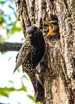 sien. De Öllern åten op, as de Lütten dat eerst Mål mit rut op de Wisch flegen kunnen. Se stellt sik toeerst noch 'n beten tüffelig an. Åvers bald lehrten se ehr Foder söken, un dat geev dor 'n Barg Metten un Sebbers. Markwürdige Keerls weern düsse jungen Spreen. Vun seehrs