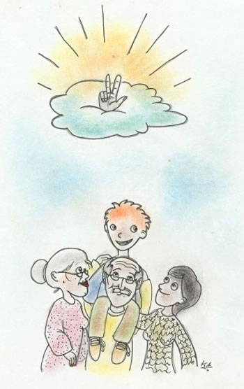 Mann, hevvt Opa un Oma sükk hööcht un Mama eers! Tja un wiel hüm sien Mümmel wichtiger wee, as keen Schellens to kriegen, hett de leev Gott dorföör sörcht, dat de Grooten de Soak van Middachs mit de Rohmpott laang vergäten harn.