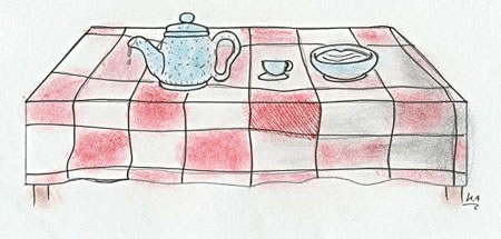 Lütt Jehann hukel dor, he troo sükk nich noa Huus to. He wull vermiddach, as Mama in d' Middachstünn'n wee, doch blossich een bäten mit Finger ut de Roompott schlikken. Dorbi is de Pott man so över de Disch suust un up de Grund körtfallen. In de Köäken up de Footdeel wee dat al vull Room. He is man so ut de Köken neit un in de Buschk rin.