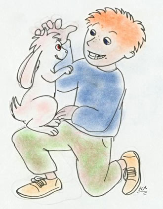 Tomoal verfäär he sükk dor wee hüm doch verraftich wat up sien Schoot sprungen! Sien lüütji witte Hoas wee hüm noakoamen de har hüm funnen.