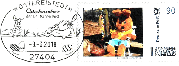 hett en egen Poststempel un sogor en egen Breefmarke!