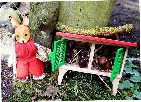 An den Pahl vun de Goornpoort stünn noch en Kaninkenstall. De Döörn stünnen sparrangelwiet up. Ut jede Stalldöör keken lütte Kaninken.