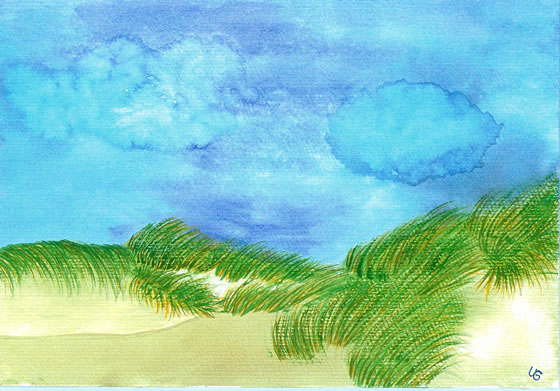 dwars dör de Dünen na'n Strand hendaal. Dat rode Dack vun