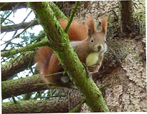 Up mien Weg hierher heff ik den Eekkater drapen. He seet baben in en groten Boom un reep: "Wat wullt du denn hier?" Ik anter: "Ik mütt doch mal nakieken, up juuch dat goot geiht!" Ik mascheer den Goornweg wieder rünner.