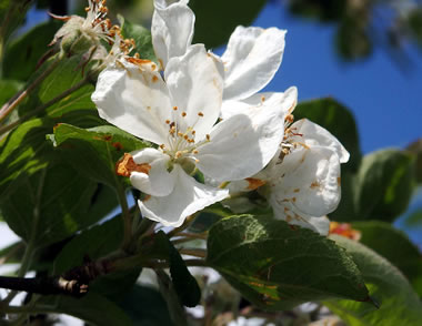 Aver dat gifft uk 'n poor, de fallt fröh af. Op dat Foto is to sehn, wo lange Stengels se all hebbt. Düsse jungen Appels hebbt noch keen utbildt Kerne un köönt noch keen niege Appelbööm seien. So süht 'n jungen Appelboom ut. Wenn wi Glück hebbt, kriggt he schöne Appels, de denn in Harvst afplückt ward. |