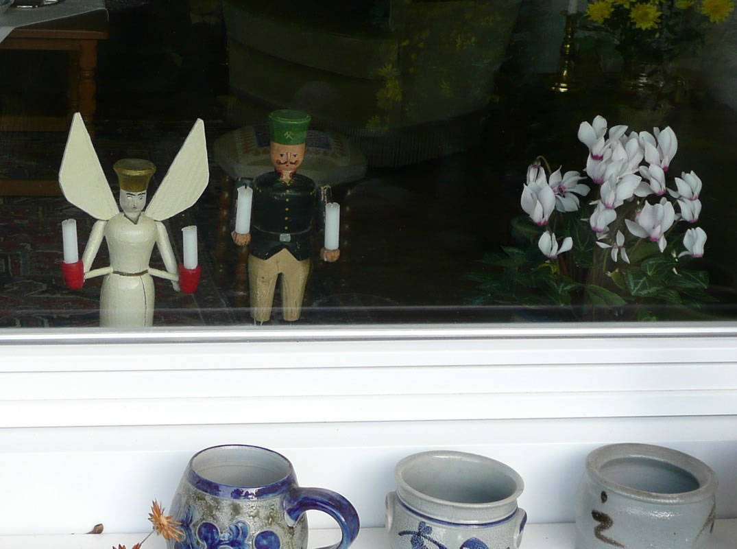 mit anner Engel ut anner Länner in en Finster. Aver al twee Daag