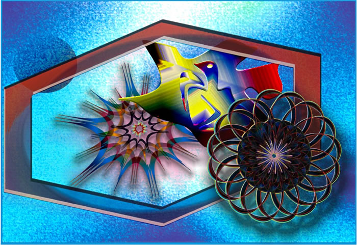 Figuuren, vörn un achtern, daut nao Farven jachtern. Den Ruum dörschwäven, is staohrig ehr Beläven. In den Raohmen faoten, maoket ehr verdraoten. Vör den blawen Grund, dor geiht et alltied rund.