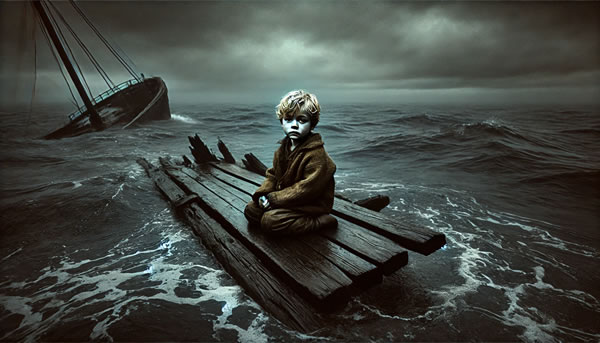 En lüttje Jungske mit lechte Haar liggt in dat Backje un lies jötert he. Tegen hum lagg en Stückje Papier. Daarup steiht: "Wi sacken off, de Jungske ik beed holl d'r an " keen Naam, keen anner Woord. So is't all utkomen, wat de dree Töverskes sük wünsken deen un well weet, womögelk word de lüttje Jung later ok en blond Kaptein mit sien egen Schipp. Mitunner, dat kummt blot hen un weer mal vör, denn