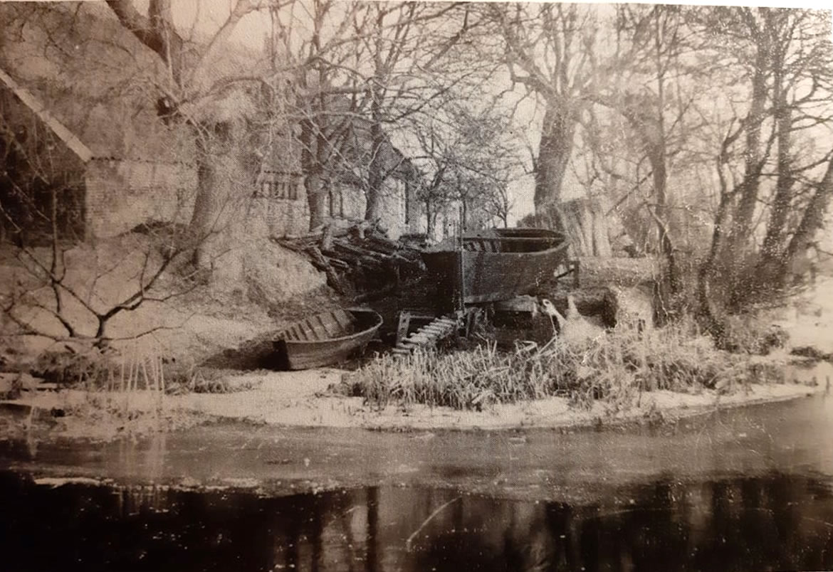 As Kinner weern wi an düsse Steed swemmen beten wieder hooch as in't Bild dacht. Schöön is dat dor, dat Water is heel torfig, wenn du dor swemmen weerst, harrst noch wekenlang dunkle Fööt vun den Torf. Hier, güntöver en T-Krüüzung vun twee grote Moorkanääl, harr vördem de ole Werft "Harm Wattjes" legen. Dat Bild heff ik na ole Fotos un Angaven maalt; dat wiest, wo 1935 dat letzte Torfschipp, dat dor buut woor, vun'n Stapel leep. Wi seggen op Platt "Muttje" orr "Törfmuttje" dorto.