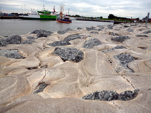 Steine ligget faste in'n Betonverloop,