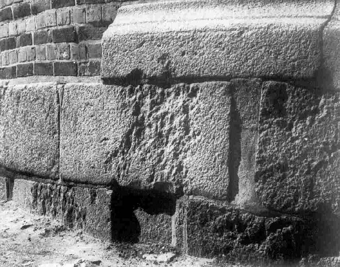 is de en buut, ünnen en Sockel ut Granit, denn Muurwark.