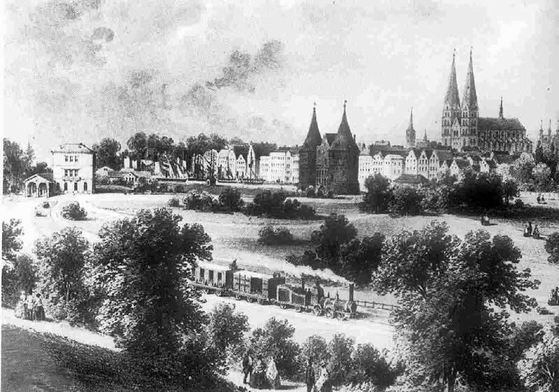 1851 föhr de eerst Iesenbahn vun Lübeck na Büchen.