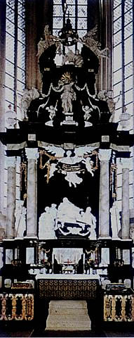 De Altar is ut de Barocktiet, Holt, bemalt as Marmor. In de Mitt warrt