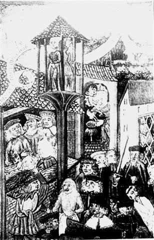 Markt stünn de Pranger, de Schandpahl. Baben up en Podest, en poor