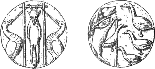 de de Göös wat vörpredigt. Up enen annern Steen sünd