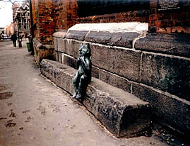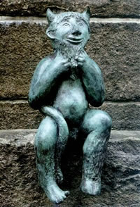 un up dissen Steen, dor sitt de Düvel, mannsgroot, ut Bronze. Den