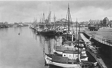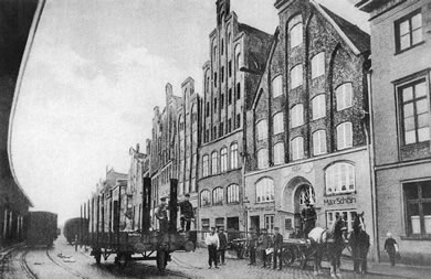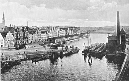 Ik kann mi noch besinnen up de Tiet na n Krieg. Dor legen ünnen bi de Dreihbrüüch de nu al mehr as 100 Johr över de Trav geiht un sik jümmers noch dreiht so Motorsegler. Meist weern de ut Dänemark, 2 orrer 3 Scheep legen nevennanner an n Kai un wörrn vull laadt ut de groten Schuppen mit Stückgoot orrer mit Kahlen. De mehrsten Schuppen sünd inn Krieg afbrennt, Schuppen 6 un 9 staht noch. Dor kann een hüüt Hochtiet fiern un Theater sehn.
