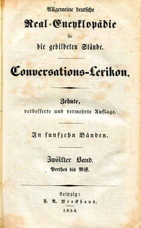 Brockhaus hett in den 12. Band van de teihnte Uplaag (1854)