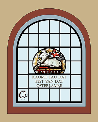 Hoch glemmt dei Karkenfaohnen Nao den truurgen Graffchoraol At ein Teiken van besünnere Ort Dö ein Leid ein Harte draopen, Südollnborger Platt: |