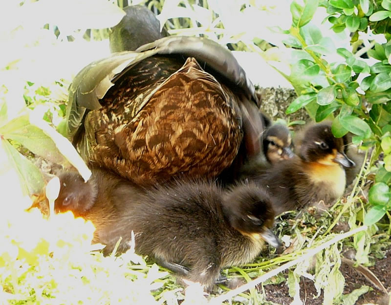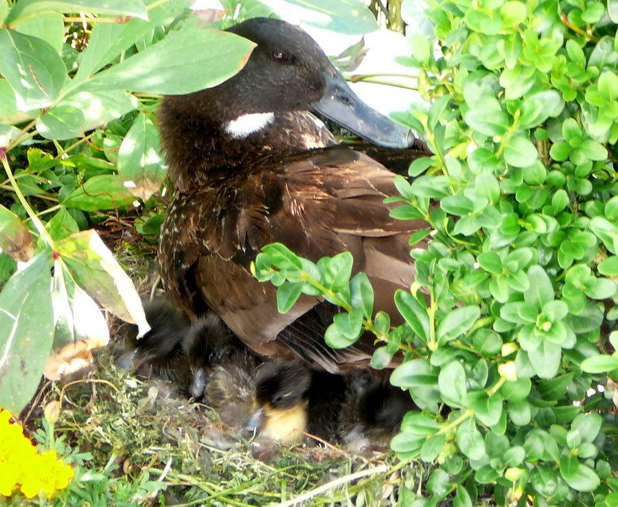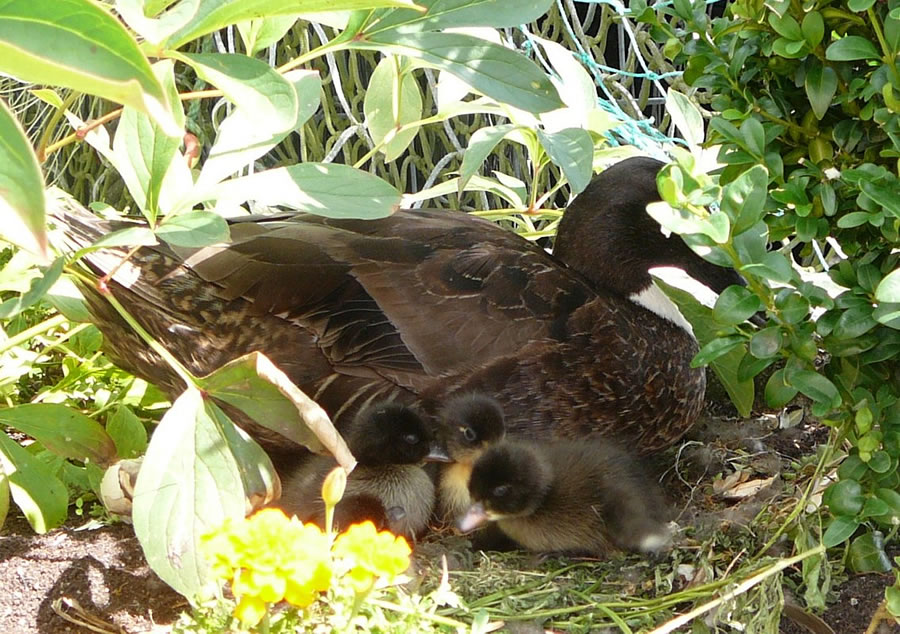 wi mit eens wies, dat in de Blomenrabatt en Aant up ehr Nest seet.
