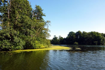 Dörch de Waterpest, en Waterplant, weer de Wakenitz deelwies