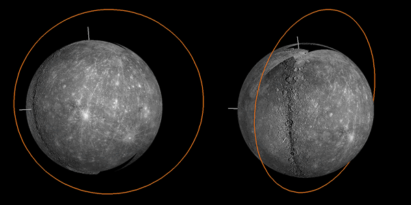 dei +Z-Assen) van dei MÜS (Inklination = 90°). Dei Ümloop För dei MÜS is ein Polar-Ümloop (Flüg äöwer dei Merkur-Pole) dei schall eine Ellipsen-Form häbben plaont. Dei Ümloop van Ruumsonden werd meist in Form van dei Keplerschken Baohnelemente angäben. In dei Tabelle neern finnt man dei. In dat Bild "Baohnelemente" werd dei Ruumlaoge dör dei Baohnprameter at Skizze nauer verklort. Dei neumten Baohnelemente ännert sick mit dei Tied (f(t)) dör eine Riege Störungen: Gravitationspotential van den Merkur (Affwieken van eine ideaole Kugel mit sphärischk symmetrischke Massenverdeilung; tau'n Bispill dör Affplatten, Leegten, Barge, verschiedene Dichte), Gravitationspotential van annere naohe Himmelsobjekte (t. B. Sünne) un dei solare Straohlendruck (Photonen, dei ehren Impuls an dat Ruumschipp äöwerdräget). Eine annere Störgrötte, besünners för deip fleigen Satelliten, is eine affnähmen Geschwinnigkeit dör dei Riewung mit eine Atmosphäre. Bi den Merkur aohne Atmoshäre hät dit kien Bedüden.