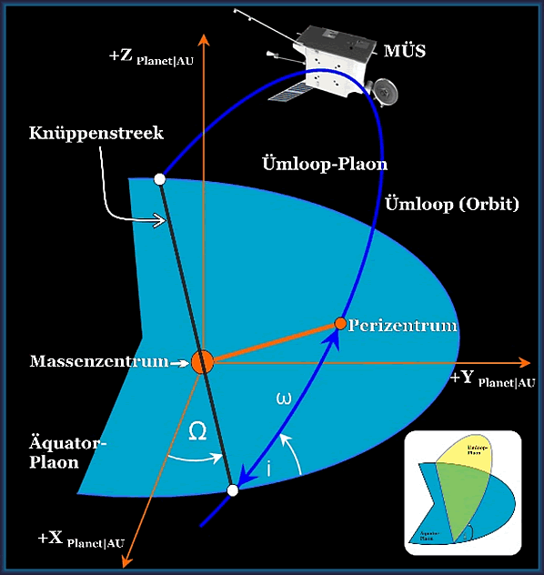 Dei rümlicke Orientierung van einen Ümloop (Orbit) kann man immer äöwer dei Angaobe van drei Winkels beschriewen: