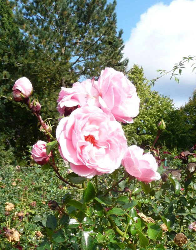 Nu harr de Goorner ehr Naversch ok en Band üm den Stock bunnen. Se höör up den vörnehm Namen "Lady Hamilton". Vun dor an dröög se den Kopp noch höger un snack mit de lütt Roos keen Wort mehr. An neegsten Dag kemen de Goorners un buddeln "Lady Hamilton" ut. Se güng ok up de grote Reis. Endlich kunn de lütt Roos wedder Luft halen. Se möök sik richtig breet. Ehr Telgen strecken sik in de Hööcht un setten glieks Knuppen an. An annern Dag kreeg se Besöök vun en poor Dacklünken. De vertellen sik dat Nieste vun de Welt. De en Dacklünk harr tokeken, as de Rosenstöck in en groot Lastauto packt wöörn. En anner Dacklünk wüss, dat de Rosenstöck in enen groten Park kamen sullen. Wenn se doch man ok eerst so groot weer un enen Namen kreeg! Denn kunn se seker ok up Reisen gahn. Sünnenschien un Regen wesseln sik af un leten uns lütt Roos in de letzten Weken düchtig ranwassen. Se harr dorbi richtig Wehdaag in ehr Telgen. En Knuppen na den annern keem an't Dageslicht. An annern Dag weer een Knuppen upblööt. Se weer över sik sülvst verdattert. So'n smucke Blööt harr se sik nich totruut.