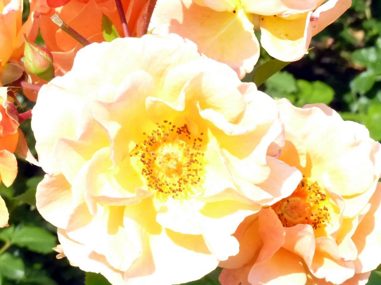 Aver ik wull jo noch mehr sehn un nich hier glieks vör Anker gahn. Nee dat geiht wieder, leve Lüüt! Ik kümm mit! De vulle Rosentiet is ja woll Mitte Juli meist vörbi, doch ik heff an Weg noch wekke funnen un wat scheune Farven! Eutin nöömt sik ja ok "de Rosenstadt", un den Naam hefft se Ehr maakt. Heff de Rosen glieks fotografeert. De Regen hett se noch nich ümbröcht. Hier in düssen Park an'n Rand von den Eutiner See süht dat wunnerscheun ut. As in Märken!