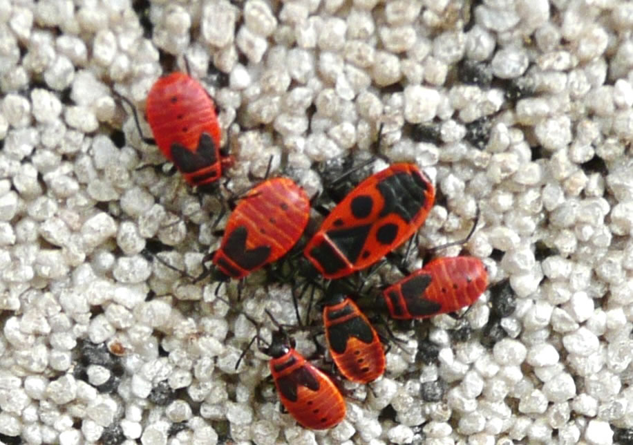 Hupen Füerwanzen wies worrn. Se seten dicht an dicht, meist upeenanner