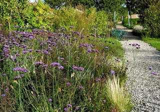 Stauden. Mank verscheden Ziergräser keken Astern, Fetthennen,
