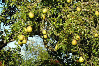 Birnbööm un achter de Muur ole Eekbööm wies. De
