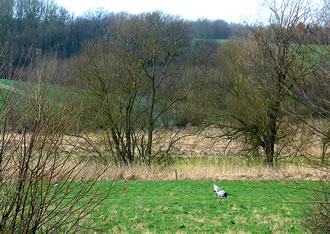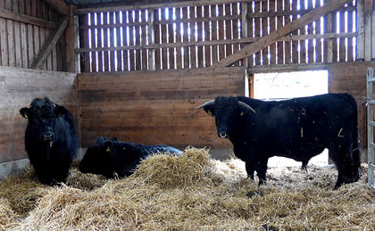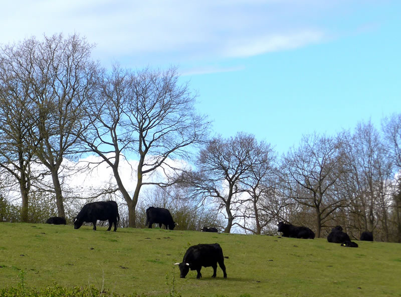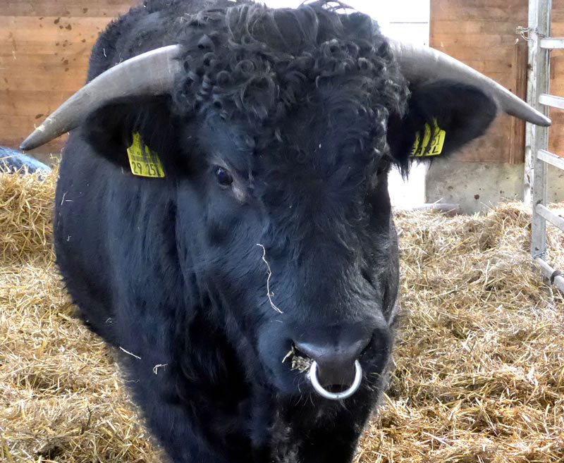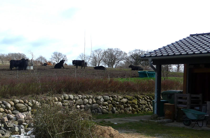 "Und nun wollen Sie von hier das Bett der Schwartau suchen!", lach se. Vörher wies se uns noch de Welsh Black, de in den Stall up den Hoff ünnerbröcht weer'n. Bruukt denn düsse "Robustrinder" överhaupt en Stall?! Nee, aver düt hier weern Bullen ganz besünnere. De harrn al enen Ring dörch de Nees. Dat bedüüd, dat se keen Slachtveeh weern. De weer'n to Zucht! Dat weern sünnerlich kräftige un gesunde Deerten.