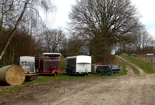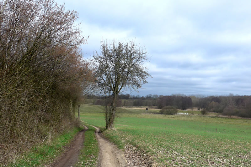 Wedder buten op den Hoff, wies de Buurfru up ehr'n Landrover: "Denn steigen Sie mal ein! Ich muss so und so unsere Felder abfahren und nach den Zäunen und den Tieren Ausschau halten! Da können sie dann das Bett der Schwartau sehen."
