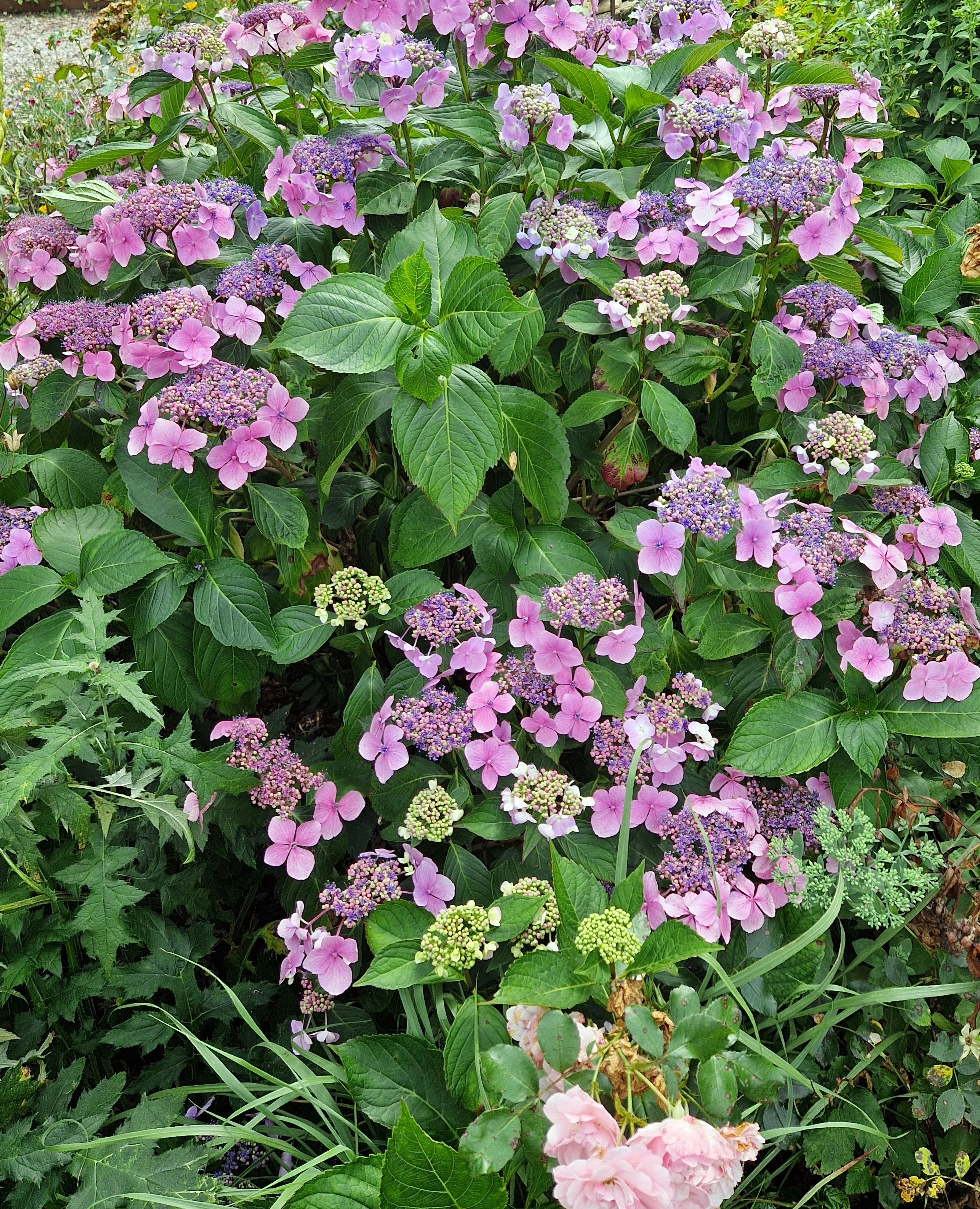 de Blötenpracht vun de Hortensien fallt een toeerst in't Oog.