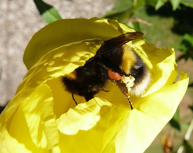 hebbt se an de Achterbeen ganz dicke geele Polster vun Pollen. Se