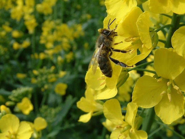 Dat mögt wi Immen, Nektar ut de Rapsblöt sugen.