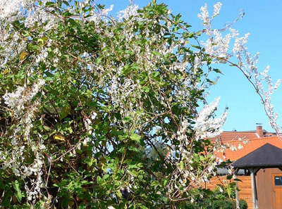 Vör veele Johr'n hebbt wi mit den Schlingknöterich, een ut de Familie vun de Knöterichs, uns Beleevnis hat. Wi harrn för uns Warktüüch en lütt Goornbood upstellt. De muchen wi aver nich so recht lieden. Dor meen uns Naver: "Pflanzen doch Schlingknöterich an die Bude!"