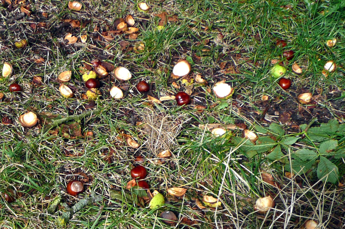 echte Kastangeln noch in de Hüll in dat Gras. De sehgen recht