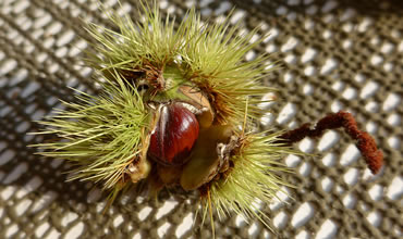 noch de brune Pell vun jeed enkelte Kastangel. De dünne Huut