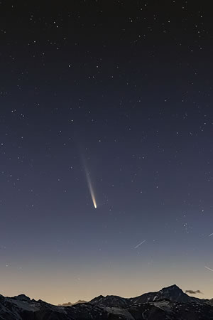 vun Marlou Lessing Ik erinner mi noch nau an Hale-Bopp, den Kometen, de 1997 jüst in de Vörjohrstied, üm Oostern rüm, so kloor an'n Himmel stunn un nu is wedder en Komet mit blote Ogen to sehn, avers nich mehr lang. Wokeen nachtens en kloren Himmel hett, schall dorüm mal fix kieken!