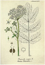 Köömkruut, Große Bibernelle = schwarze Bibernelle, schwarze deutsche Theriakswurzel |