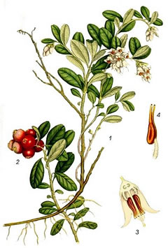 denn leest, dat de Preiselbeer (Vaccinium vitis Idaea) ok Granbeer