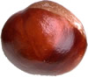 de düüsterbrunen, glänzen Kerne, de "Kastangels" (Semen hippocastani) |