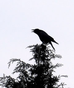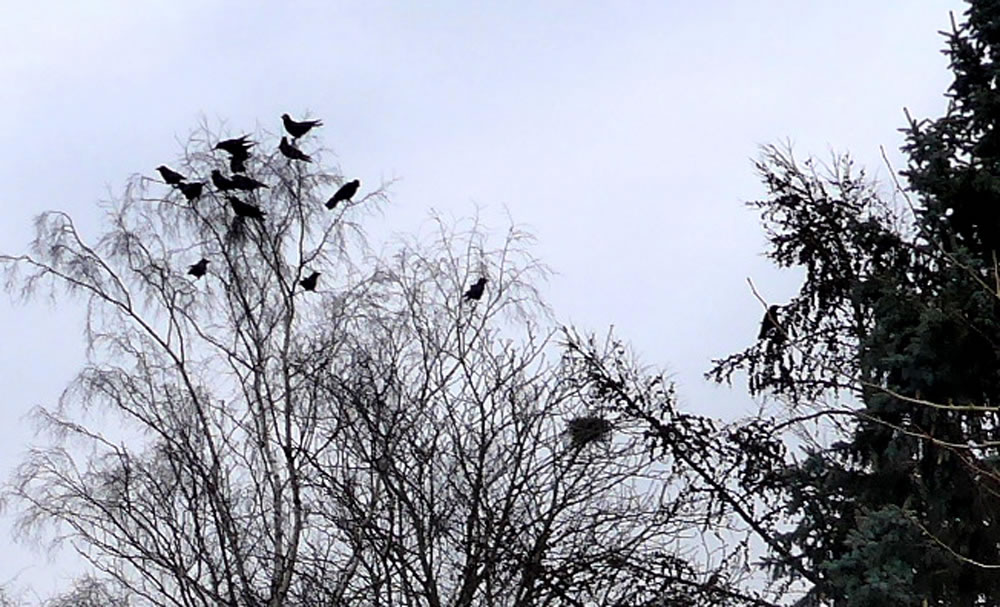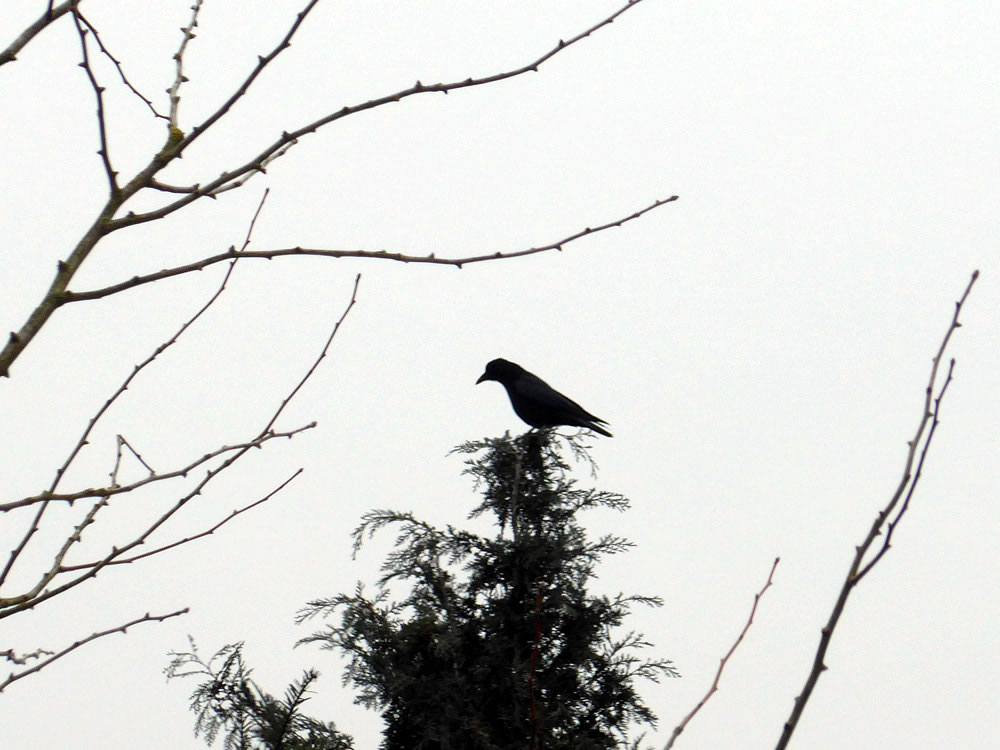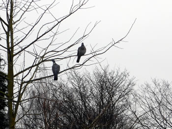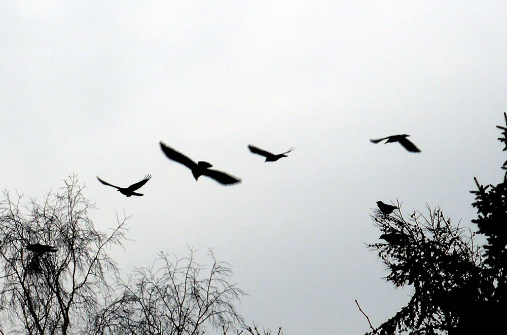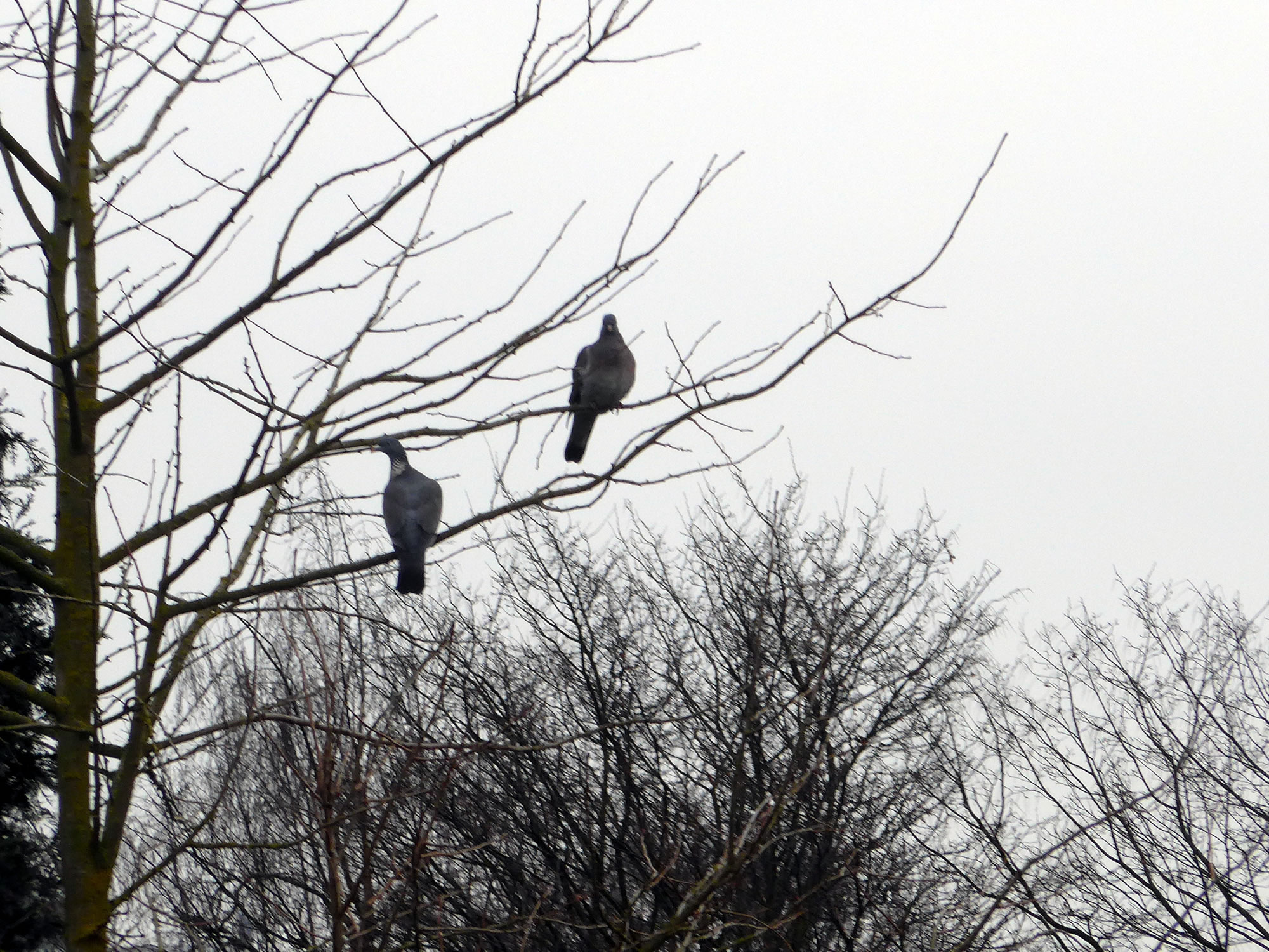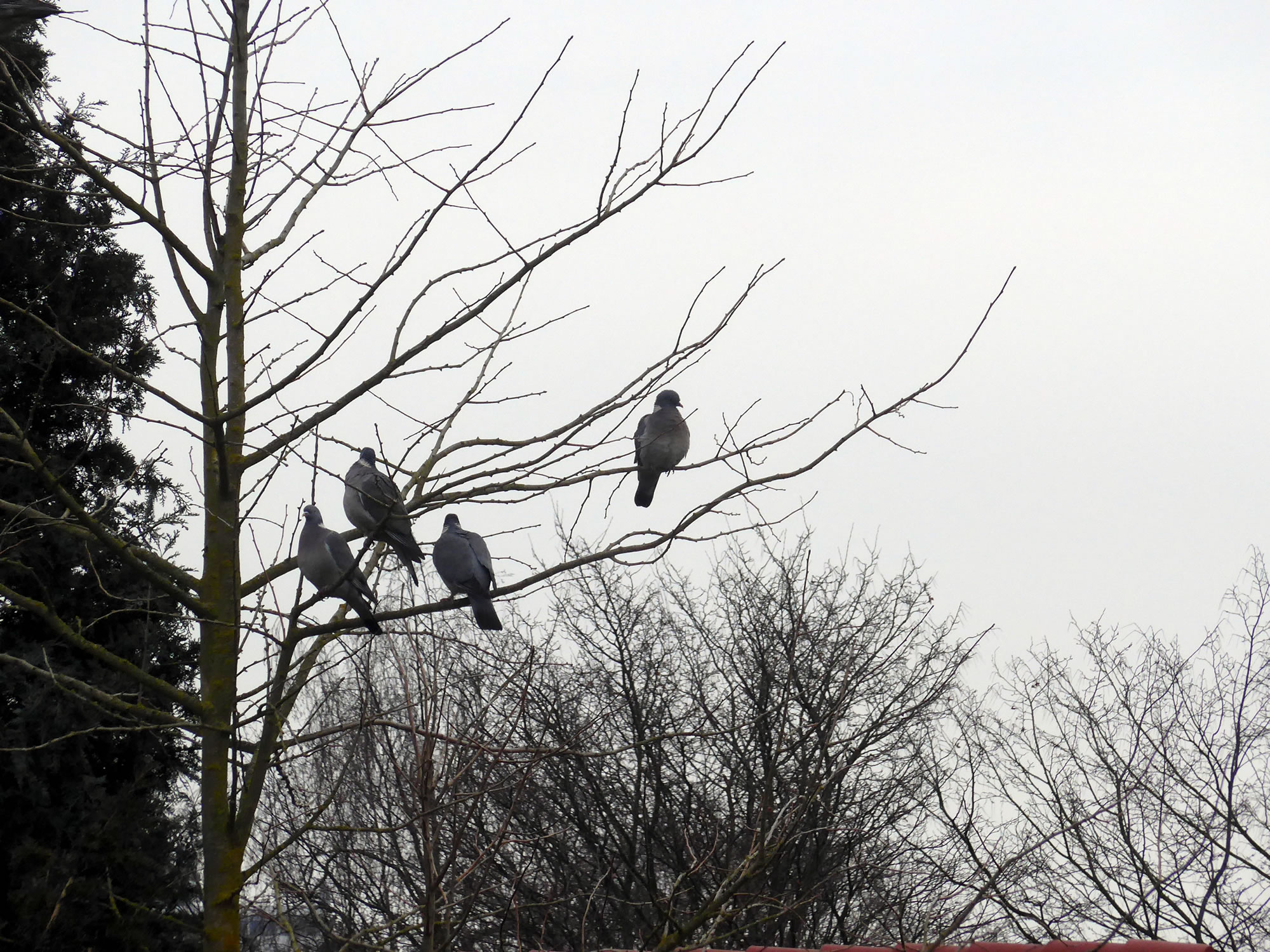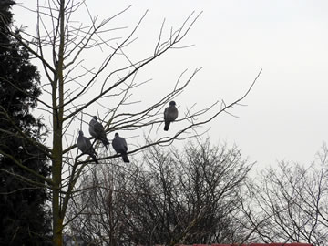 en Uhu (Schuufuu). Dorüm de Larm vun de Krein un ok vun de Ringelduven!
