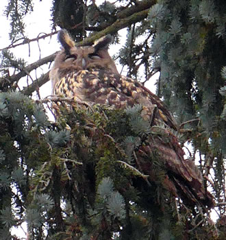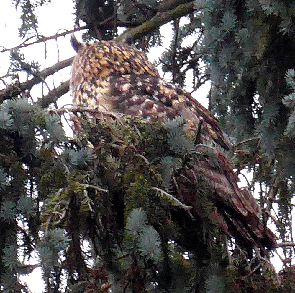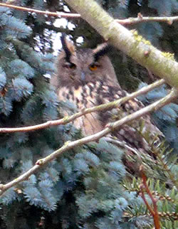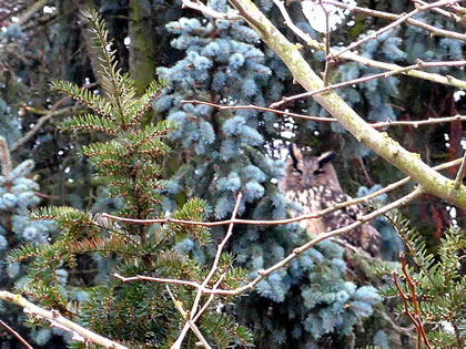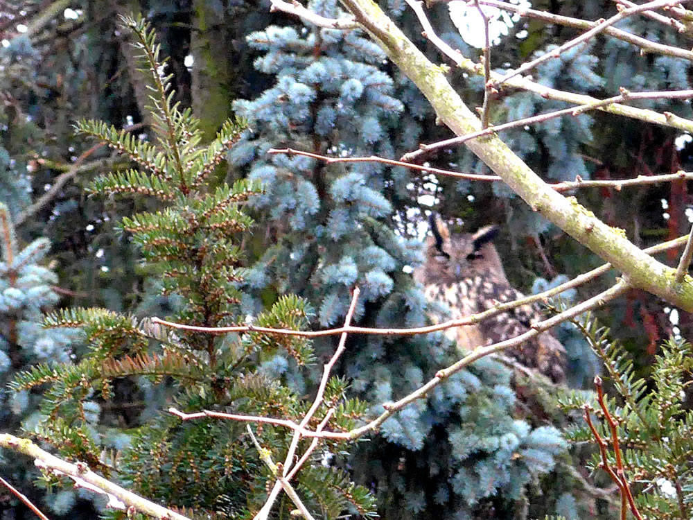 Unsen Naver söch nu de Dann mit sien Kieker na den Uhu af. Endlich