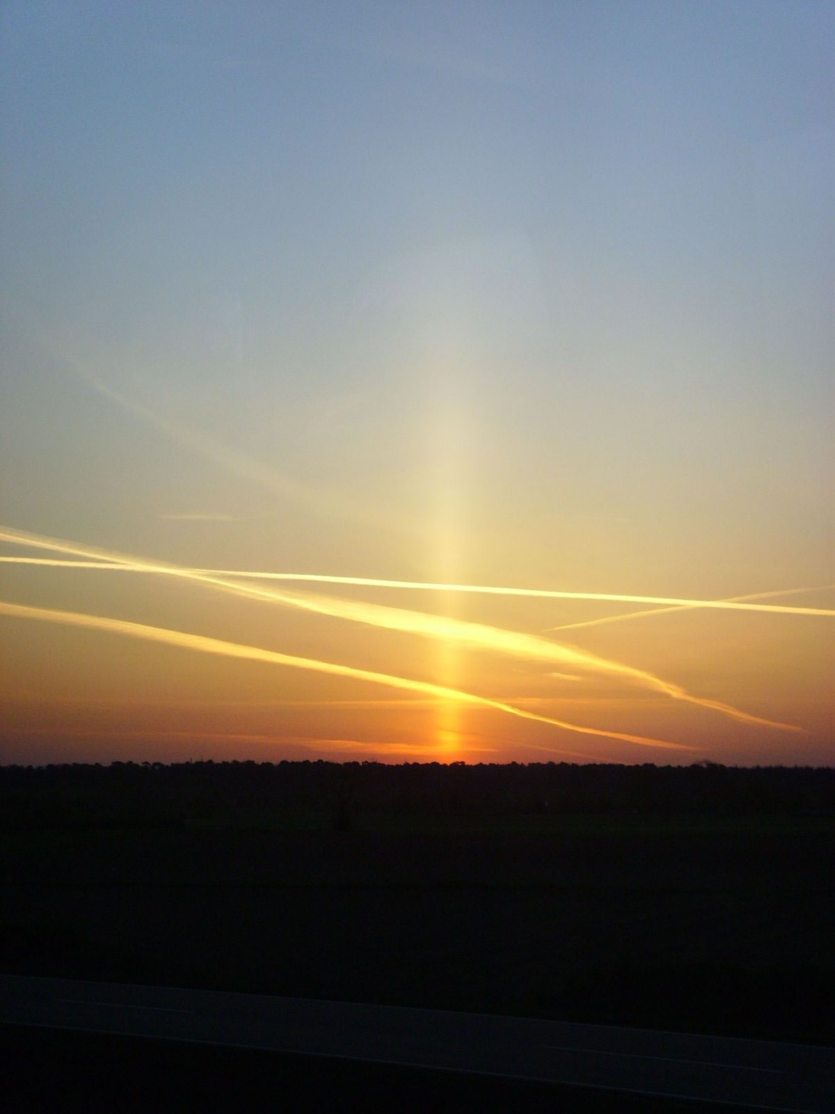 Dat Licht vun de deep stahn Sünn kümmt ok meist waagrecht. Fallt dat op de Stiernfront vun so en Iesschiev, denn warrt dat in en flachen Winkel trüchstrahlt. Man mehrst variiert de Winkel beten, wieldat de Schiev ja rümwibbelt. Un dordör kümmt ok de Indruck tostann, dat dat Licht en Pieler is: De bövelste Sünnstrahl in dat Bild rechterhand kümmt schienbor vun wieder baven (Pieler na baven). De neddere Sünnstrahl kümmt schienbor vun wieder nerrn (ünnere Pieler). Je stärker de Kristalle kippelt, je länger kann de Pieler schienen!