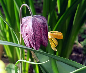 Würklich af un to kunn ik den Mann an de Wand klatschen! Un denn een Dag dor entdeck ik korallenrode Placken an Navers Schachbrettblomen. Dat sünd doch wohl nich...? Ik gah nehger ran. Doch, dor seten de Lilienhähnchen an disse besünner Bloom.