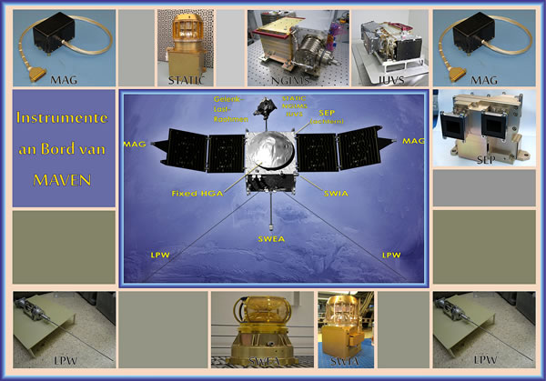 Mit eine Riege van Instrumente ünnersöch Maven nu dei Mars-Atmospäre. Disse Instrumente stellt wi hier in eine Bidragriege vör.